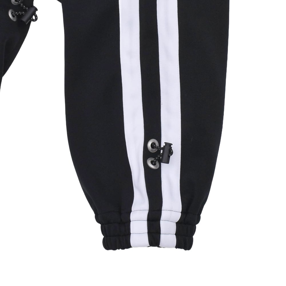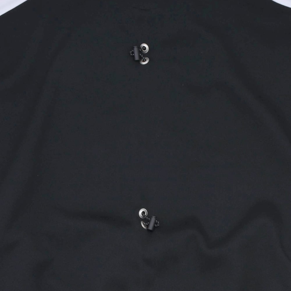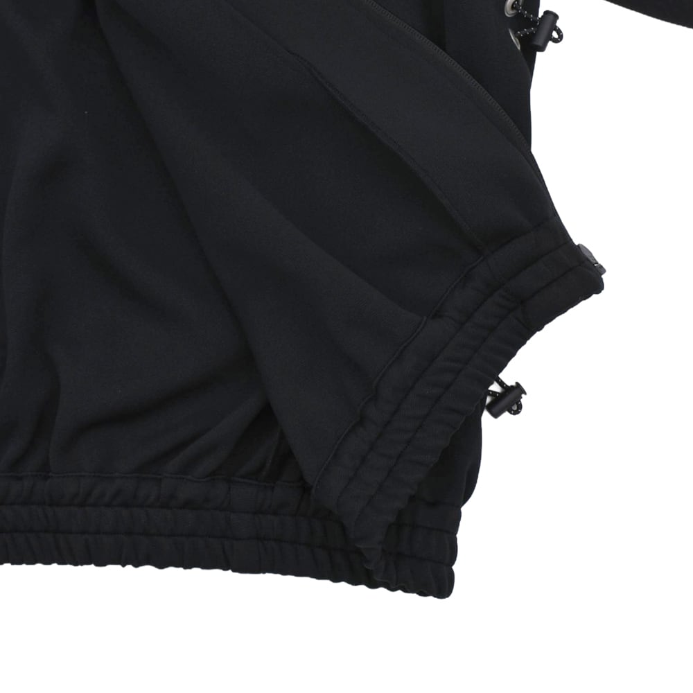 An experimental KIDILL approach featuring countless drawstrings on a seemingly simple track jacket. The cord stoppers scattered across the front and sleeves are not mere decorations but switches to manipulate the silhouette freely. By tightening the cords, it creates intricate drapes and creases in the fabric, allowing the wearer to reconstruct the 'shape' with a highly artistic sense.