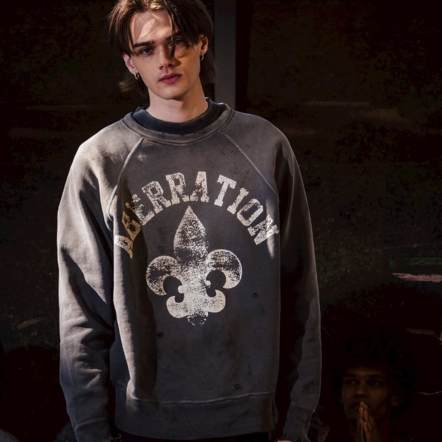 こちらの商品はヴィンテージウェアに見られる様な特有の汚れ、アタリ、ダメージなどを加工で表現してデザインとして落とし込んでいるため、