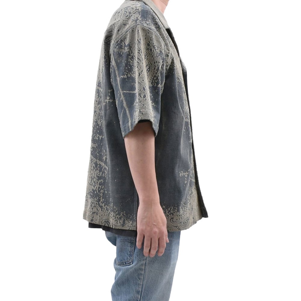 開放感のあるオープンカラー(開襟)仕様と、ゆとりのあるボウリングシャツのシルエット。デニム特有のしっかりとした生地感がありつつも、軽やかに羽織れる一着です。
