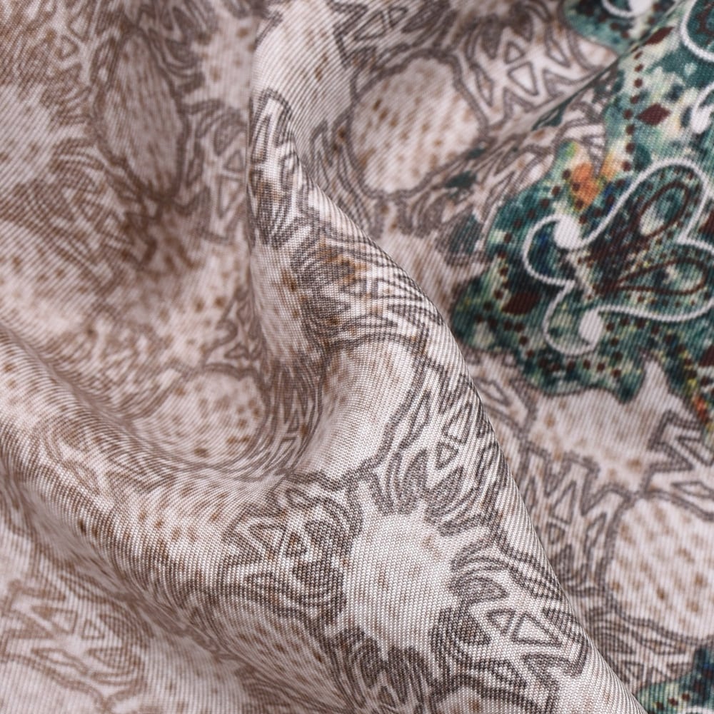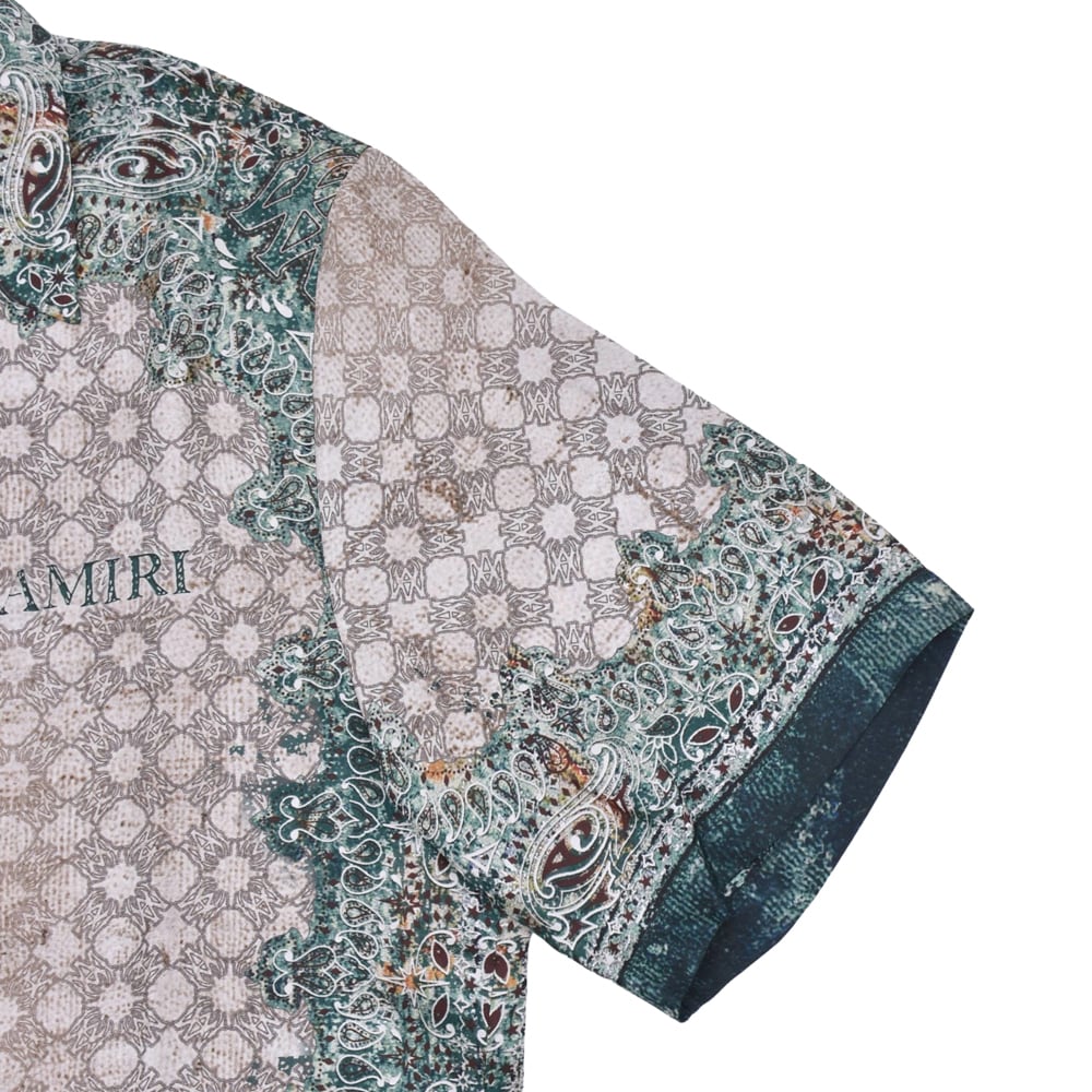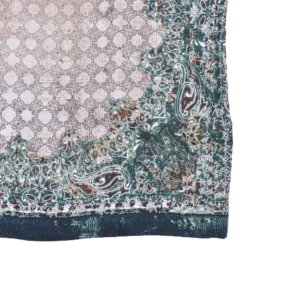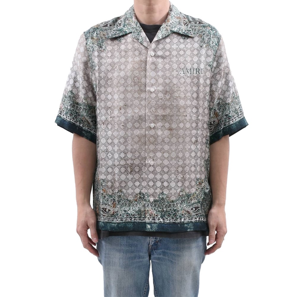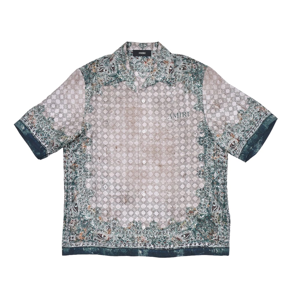 伝統的なバンダナモチーフをベースに、AMIRIらしい退廃的なタイダイ加工をミックス。セージグリーンやベージュを基調とした淡いカラーパレットが、アンティークのテキスタイルのような奥深い表情を生んでいます。