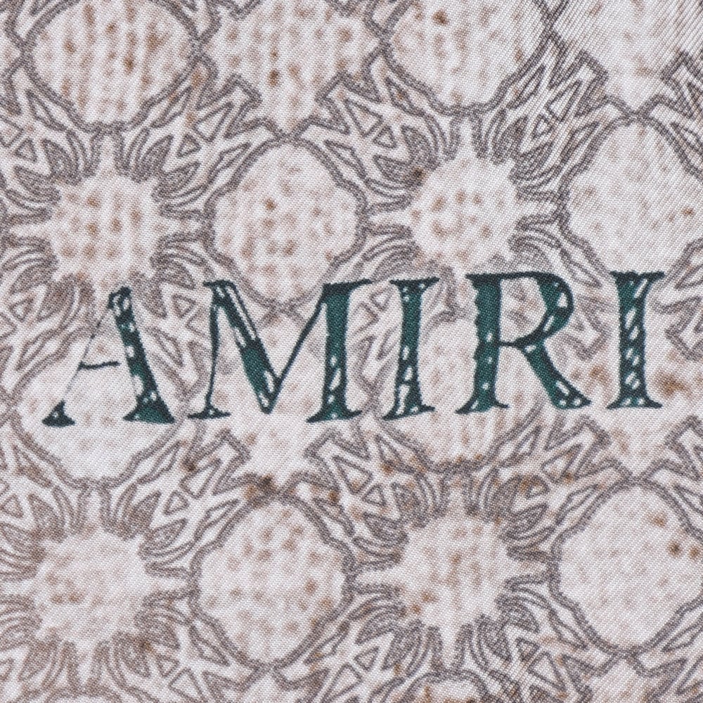 Based on traditional bandana motifs, it mixes AMIRI's signature decadent tie-dye technique. The soft color palette, based on sage green and beige, creates a profound look reminiscent of antique textiles.