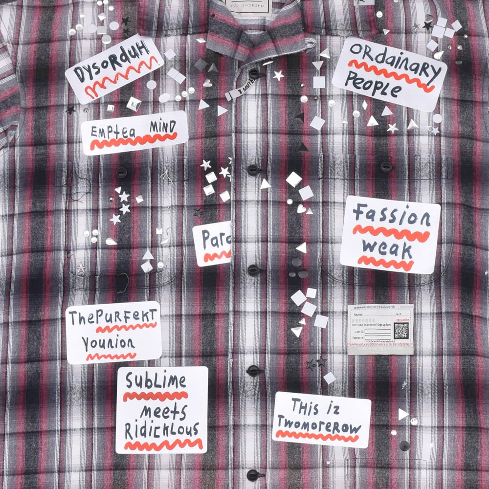 Based on a classic ombre check shirt, this statement piece is packed with punk-inspired collages and playful details.