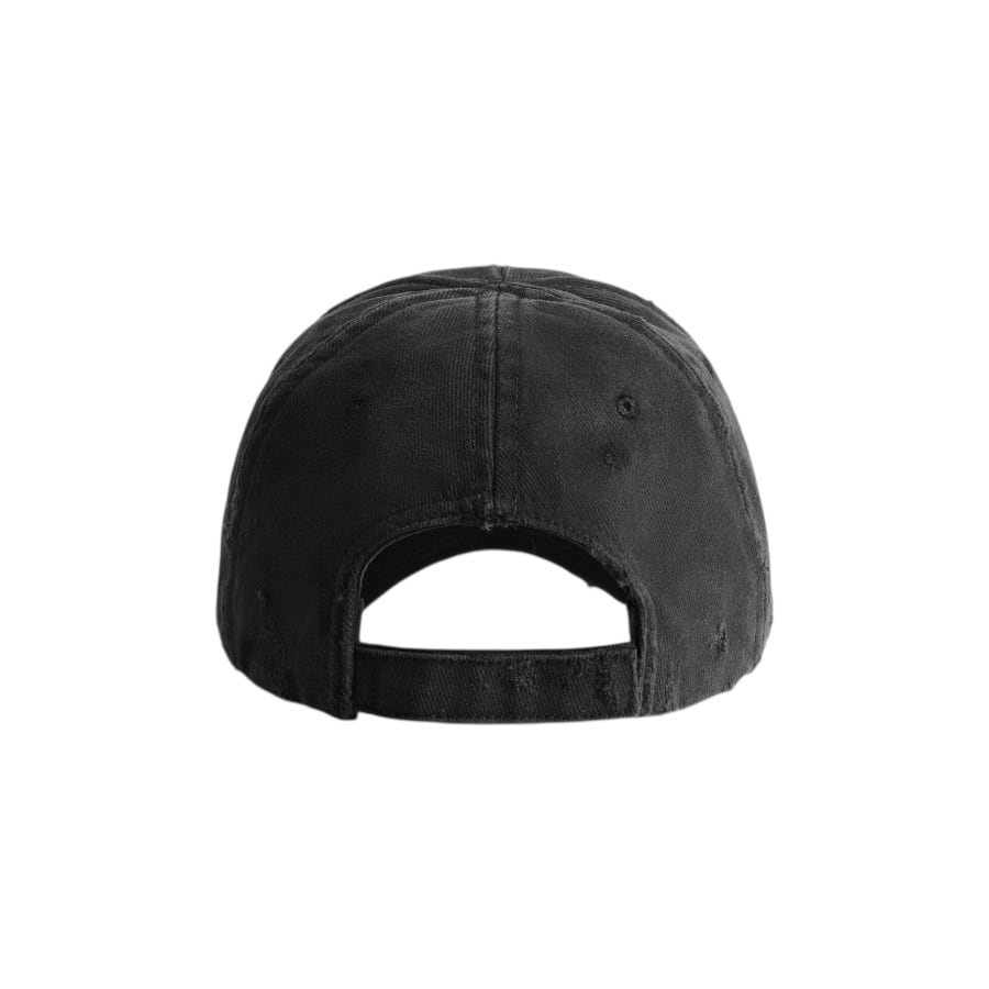 A cap featuring an embroidered logo on the front that stands out. The overall distressed finish creates a relaxed, vintage-like appearance. Despite its basic colour, it adds an edge to any outfit when worn. It serves as an accent for simple outfits and is a versatile item that works well from street style to high fashion.