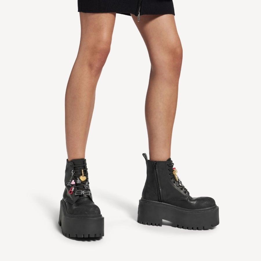 The **"Stomper"** charm boots add a punk and avant-garde essence to Balenciaga's iconic footwear line.