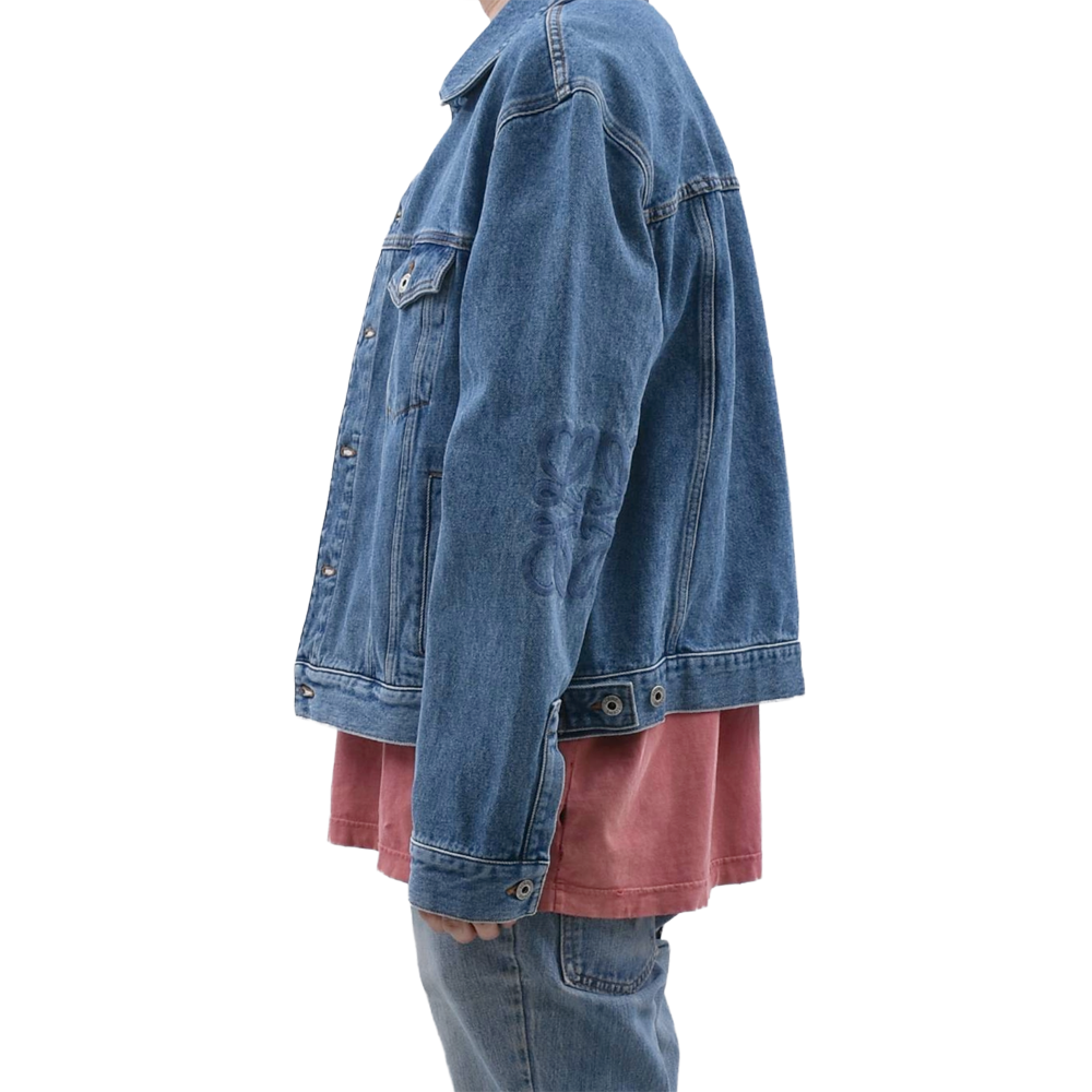 This piece embodies Loewe's identity, boldly featuring the brand's iconic "anagram" on both sleeves. While using casual denim, the meticulous cutouts and embroidered details exude the maison's characteristic elegance. A leather patch on the back adds another accent, ensuring a flawless design from every angle. A timeless masterpiece that transcends trends and can be cherished for years to come.