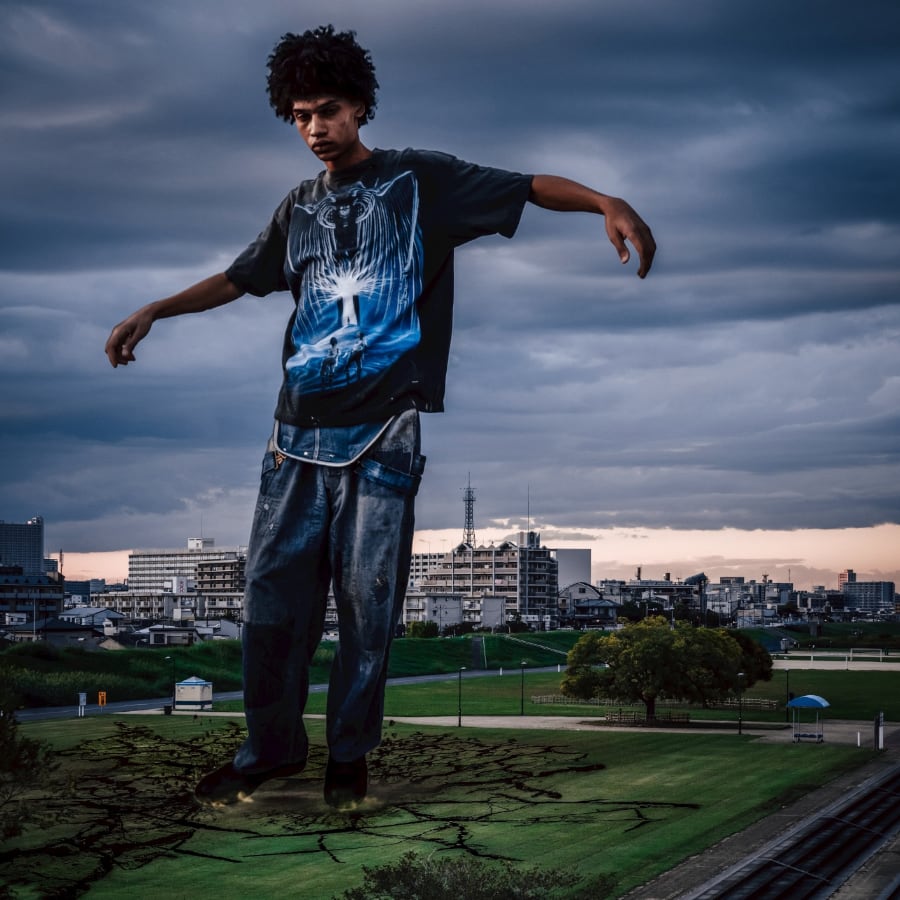 While carefully reproducing the delicate gradations and shading of the original artwork, the garment is further elevated to a more nuanced look through the application of ©SAINT Mxxxxxx's signature vintage processing.