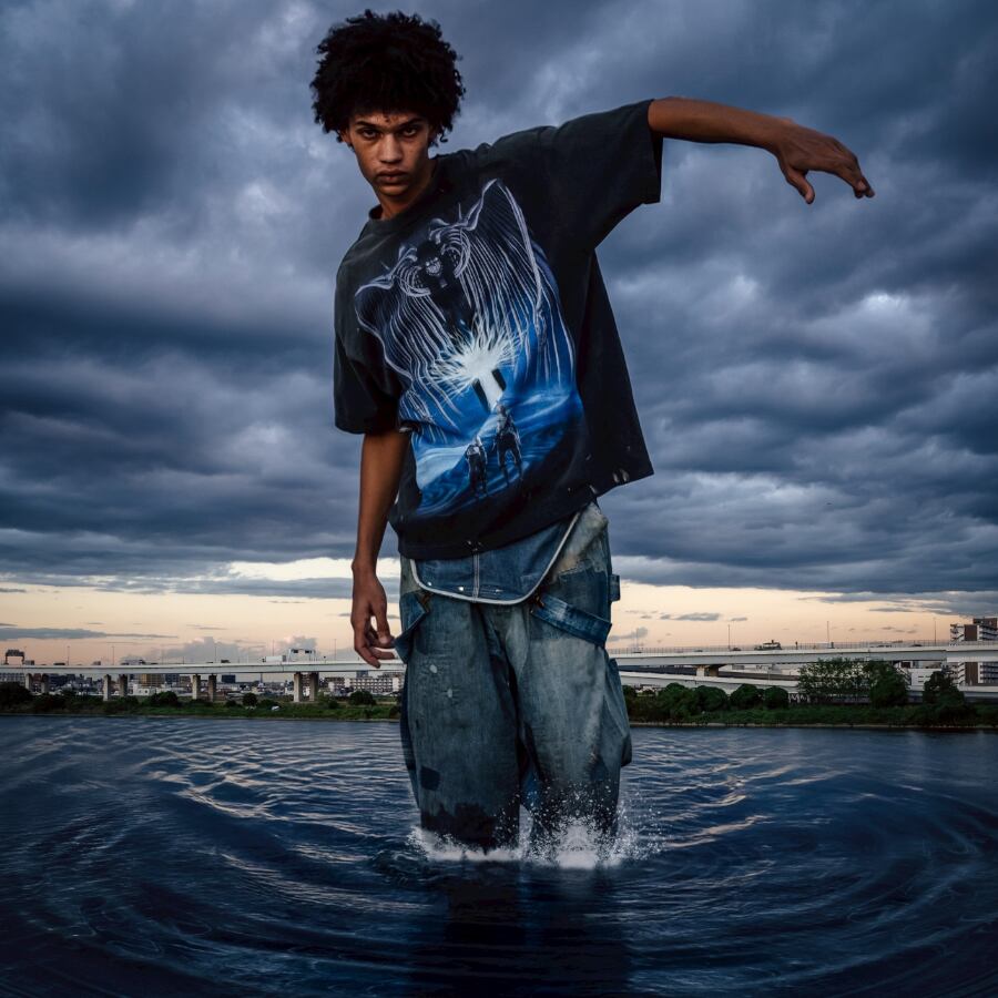 色味を損なうことなく加工を加えることで、グラフィックの迫力とリアルな着用感が共存。