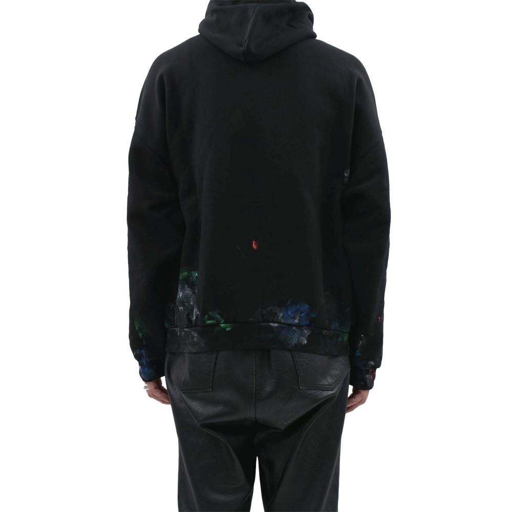 Based on heavy-weight black cotton, this artistic piece features multi-colored graffiti prints on the hem and cuffs. Its edgy design is captivating, as if a skate park wall has been directly translated into clothing.