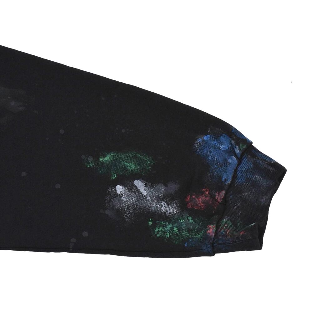 ブラックのヘビーウェイトコットンをベースに、裾や袖口にかけてマルチカラーのグラフィティプリントが施されたアーティスティックな一着。まるでスケートパークの壁面をそのまま服に落とし込んだような、エッジの効いたデザインが魅力です。
