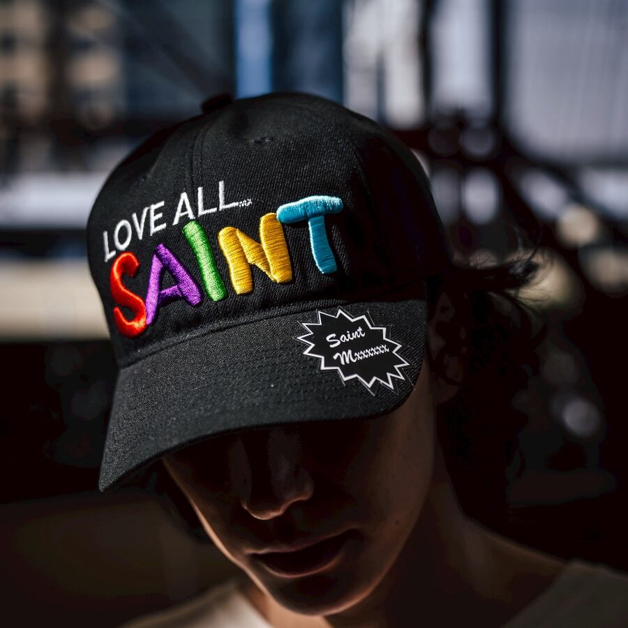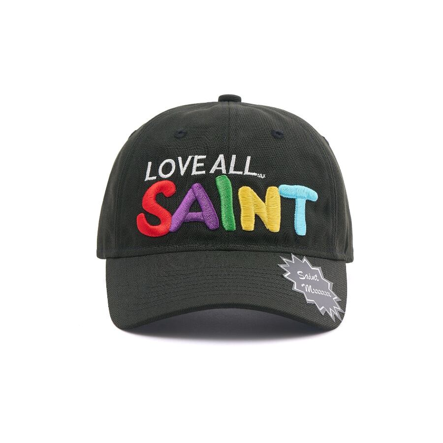 フロントには「LOVE ALL」のメッセージと、カラフルな“SAINT”ロゴを立体感のある刺繍で配置。ブラック、ホワイトともにロゴの配色がしっかりと映え、スタイリングのアクセントとして取り入れやすいデザインです。