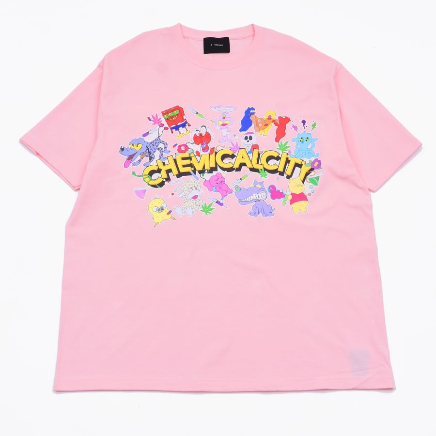 薬物(Chemical)で錯乱しているファニーなキャラクターたちがプリントされた、オーバーサイズTee。