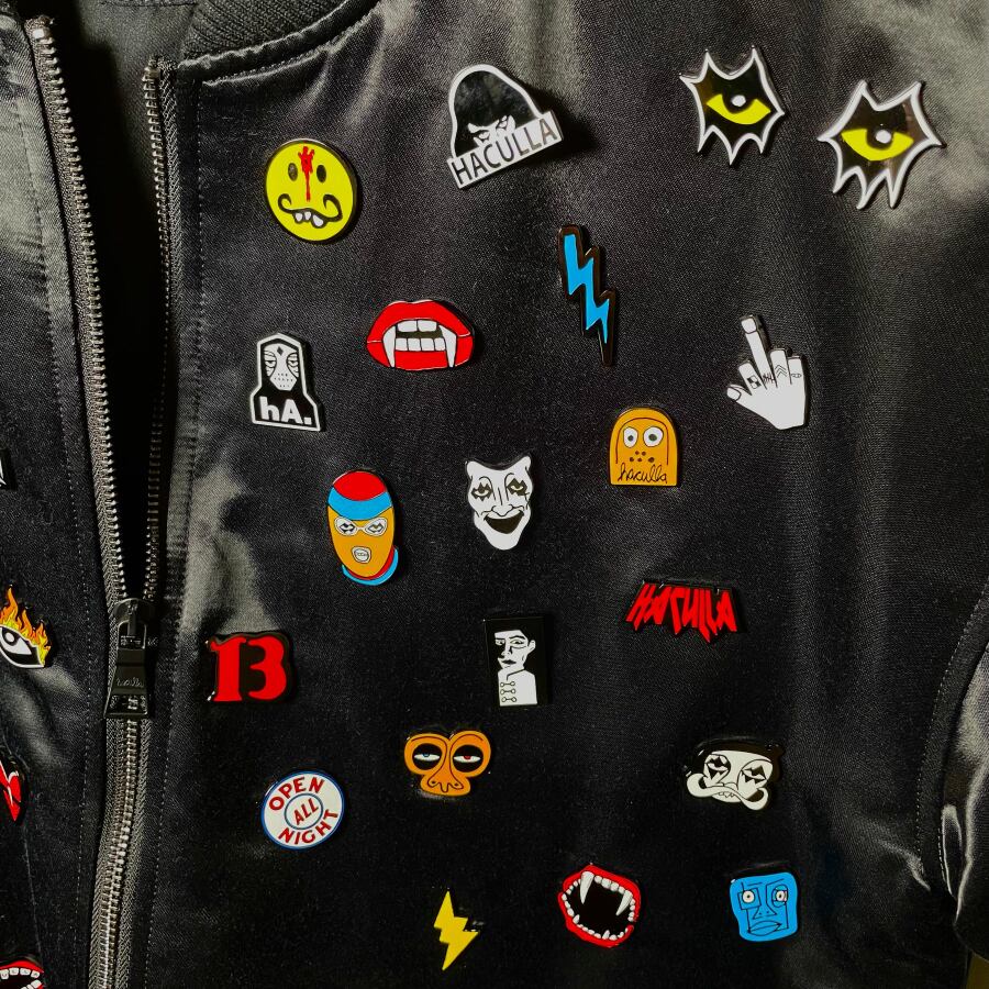 ・Hacullaがオリジナルで作成した48個のエナメルピンがボディに付いています。