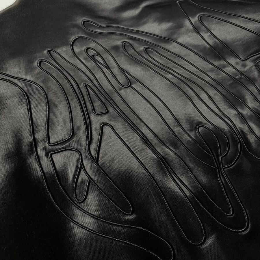 ・バックに「Haculla」のロゴで型どられた同系色のアウトライン刺繍をして、立体的にロゴを見せています。