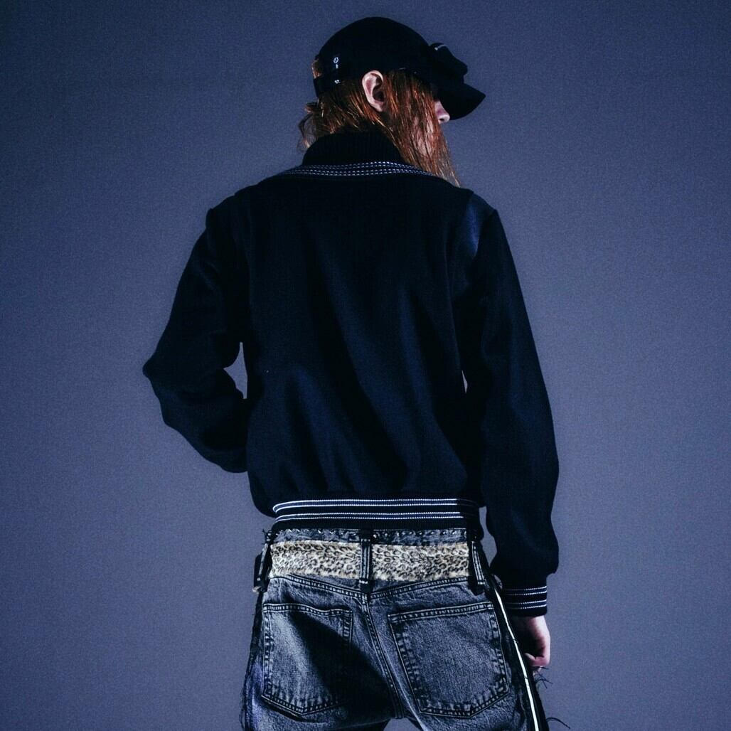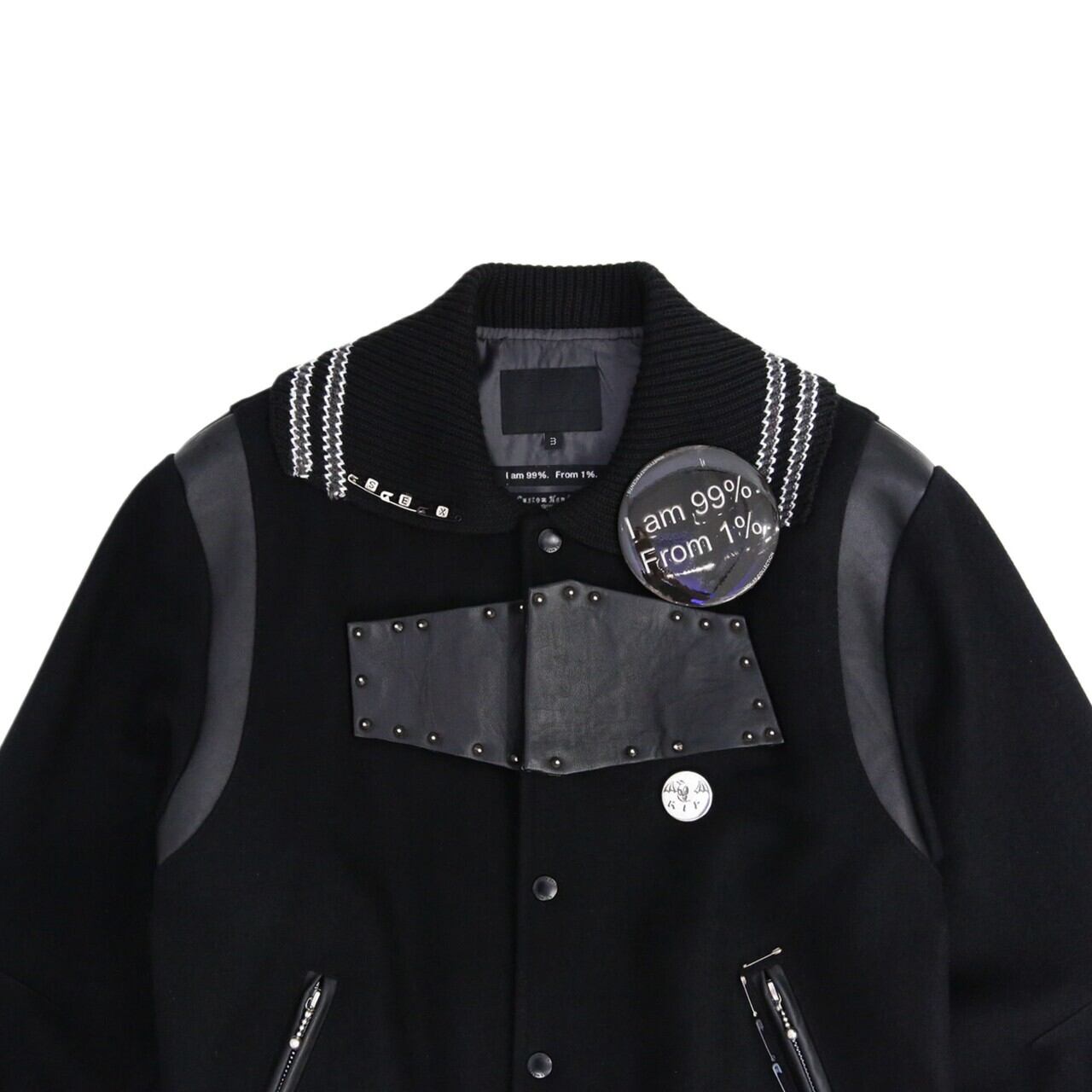 【99%IS】 Studs Leather Patch ' 77 ' Varsity Jacket [Hand Made Custom] (BLACK)