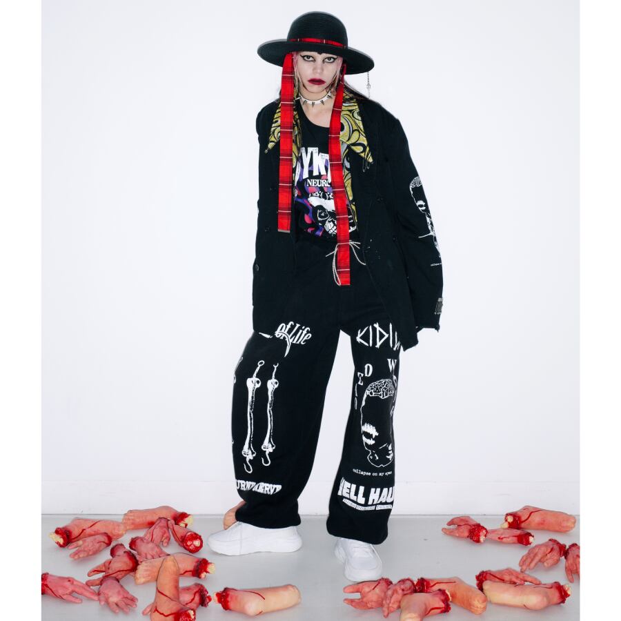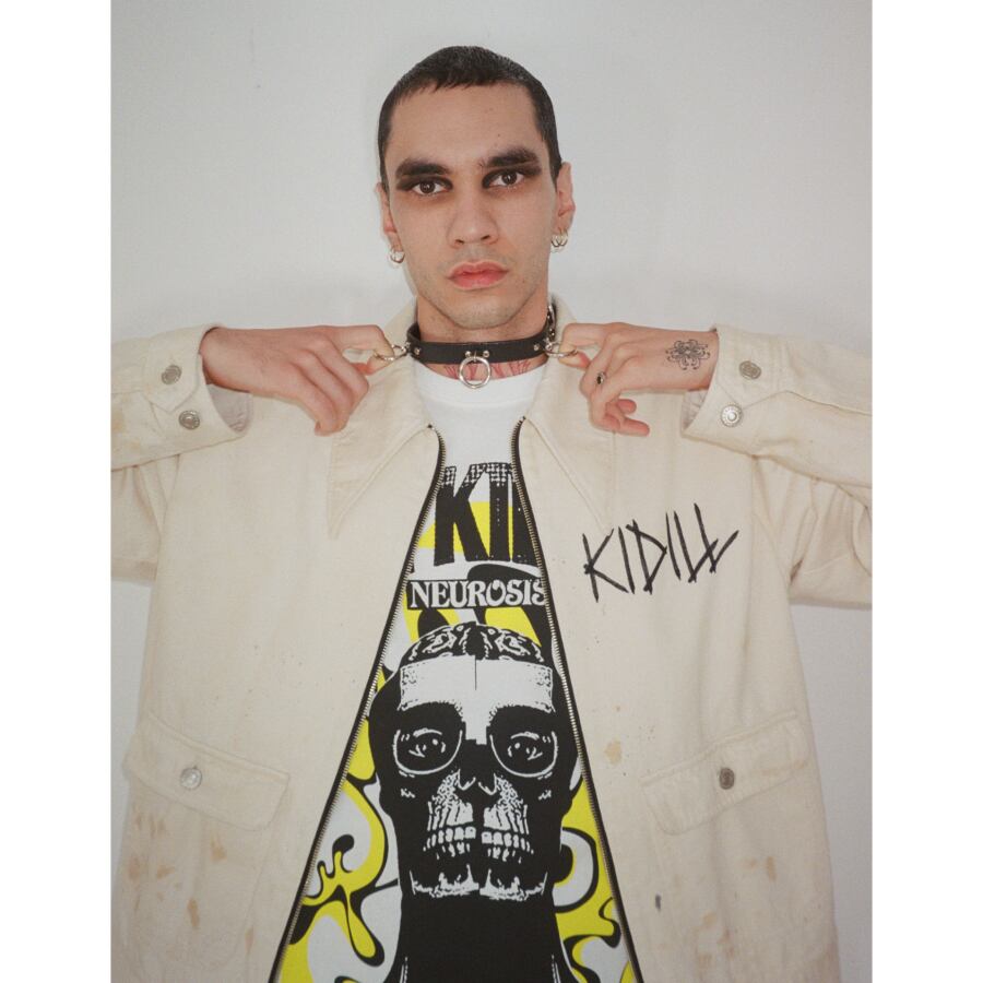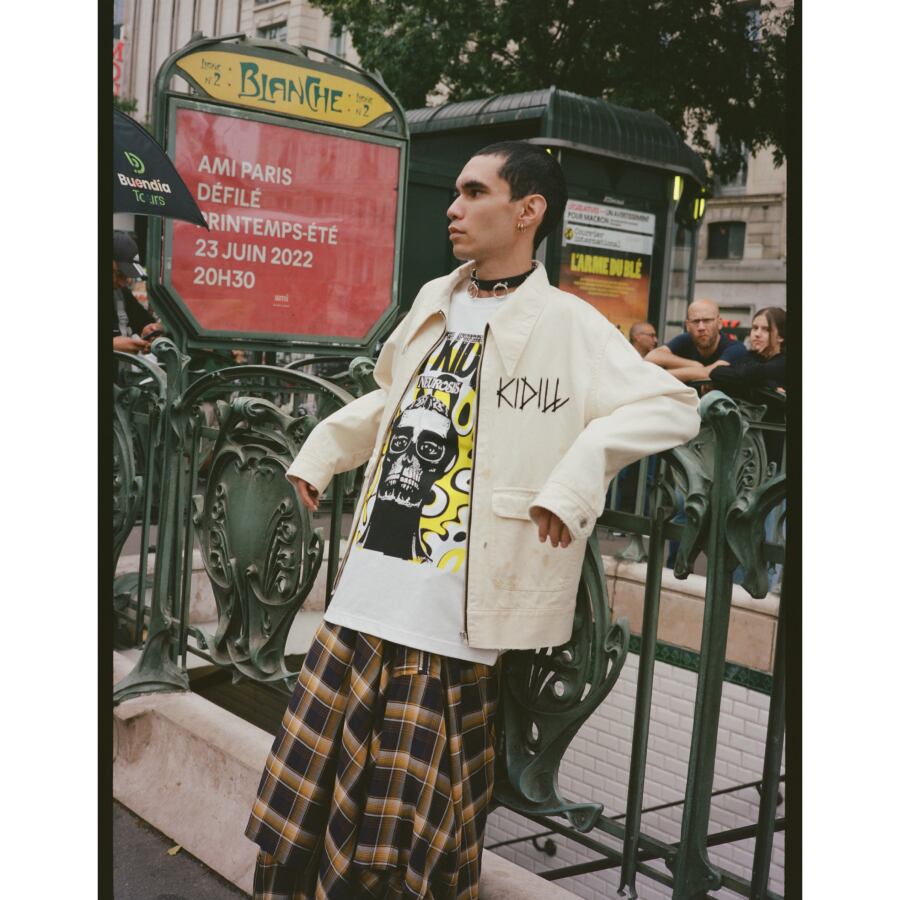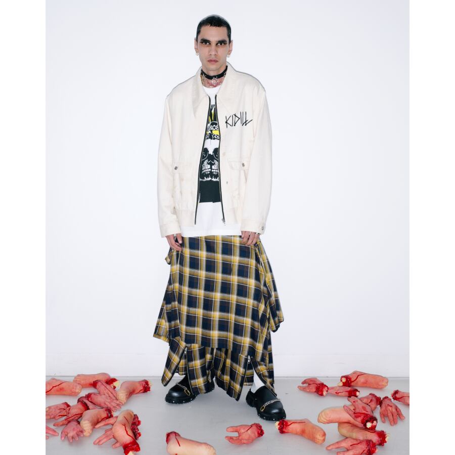末安が90年代に体験してきた、ハードコアパンクやグランジ、グラフィティ、スケートボード、文学、など様々なジャンルを取り込み、現代の新しい精神でKIDILLの服を作っている。