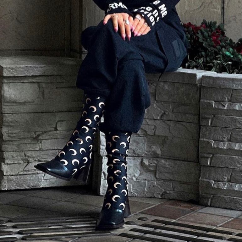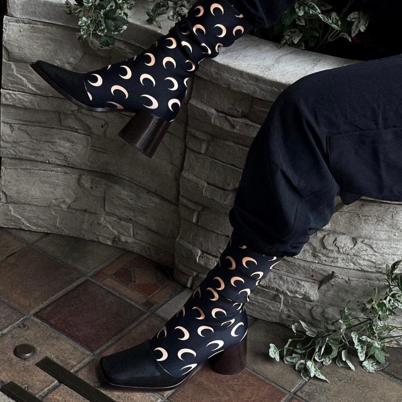 【MARINE SERRE】REGENERATED ALL OVER MOON JERSEY ANKLE BOOTS
